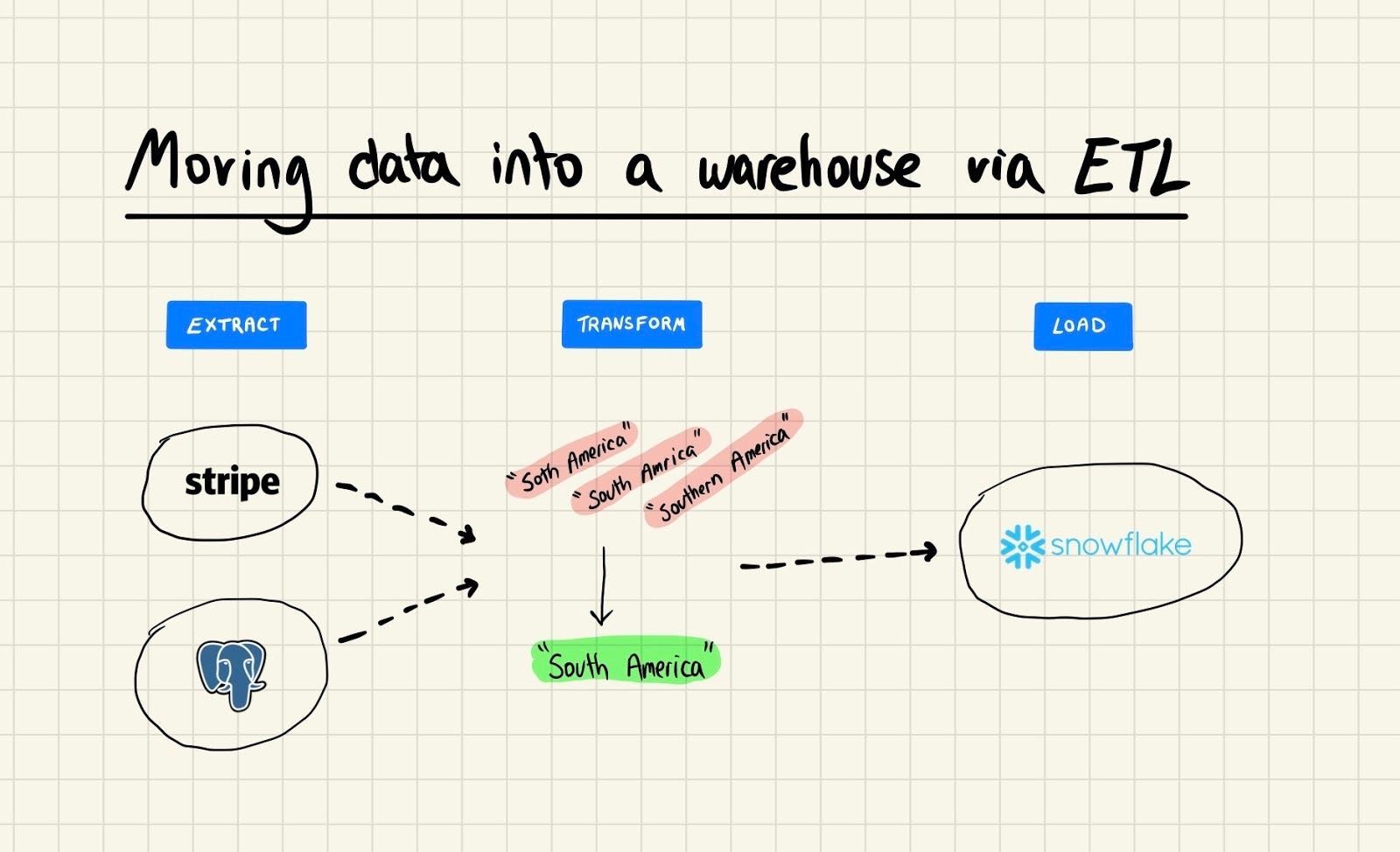 ETL stands for Extract - Transform - Load, and it’s the process of moving data around your internal systems to get it ready for analysis.